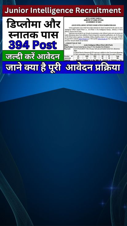 IB Junior Intelligence Recruitment 2025 - जाने आवेदन प्रक्रिया